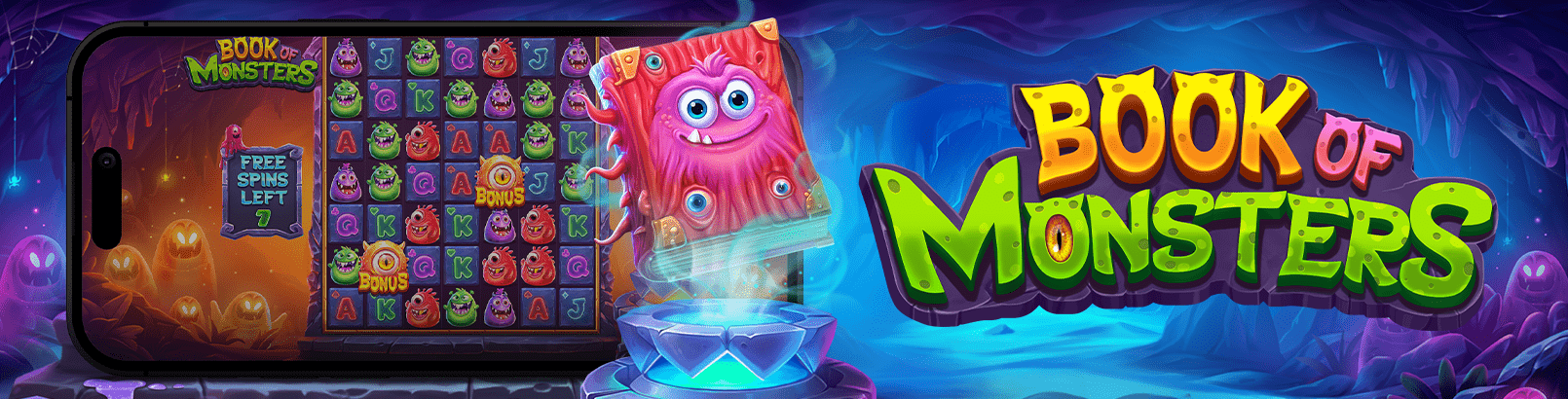 Book of Monsters is a high-volatility, cluster-pays slot developed by Pragmatic Play, released on March 27, 2025. Set in a mystical cave illuminated by glowing eyes and eerie sounds, the game introduces innovative mechanics like supersized symbols and a progressive “Fat Symbol” feature, offering players the chance to win up to 5,000 times their stake.